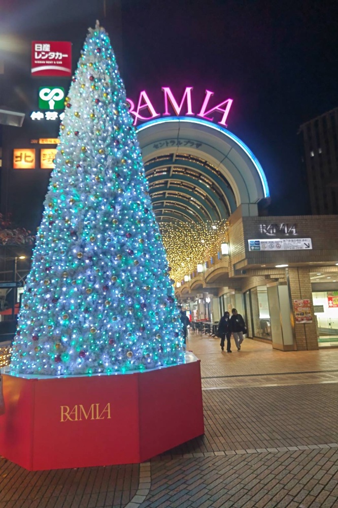 秋から年末にかけて、気持ちにゆとりがない私ですが、昨日は飯田橋の出稽古の帰り、RAMLA入口で、音楽によってライトアップが変化するクリスマスツリーを見ることができ、少しだけ足を止めました。